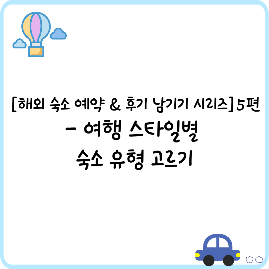 [해외 숙소 예약 & 후기 남기기 시리즈] 5편 – 여행 스타일별 숙소 유형 고르기
